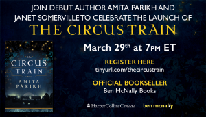 We are honoured to be the official booksellers on behalf of Harper Collins Canada for the book launch of The Circus Train by debut novelist Amita Parikh. Janet Somerville will be hosting and conducting the interview. When: Tuesday March 29, 7 p.m. Where: Online Only Registration is here: tinyurl.com/thecircustrain