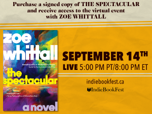 IndieBookFest via HarperCollinsCanada are hosting an event with Zoe Whittall. Zoe will be talking about her new book The Spectacular. When: Tuesday, September 14, 8 p.m. Where: Online Only Registration is free with purchase of the book, so call us or email us to get your copy!